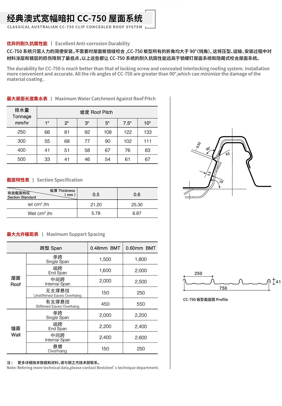Classical Australian CC-750 Clip Concealed Roof System